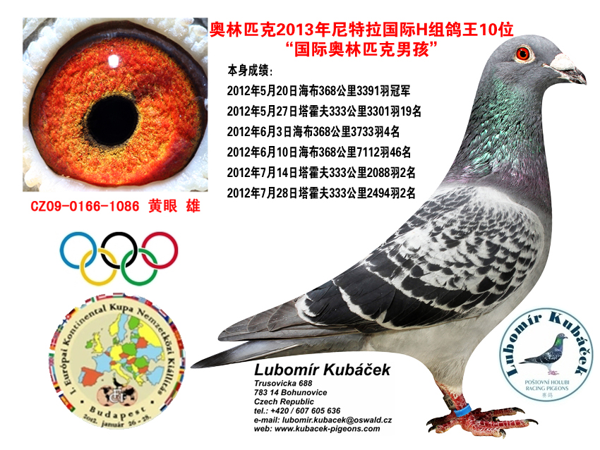 赛绩:奥林匹克2013年尼特拉国际H组鸽王10位