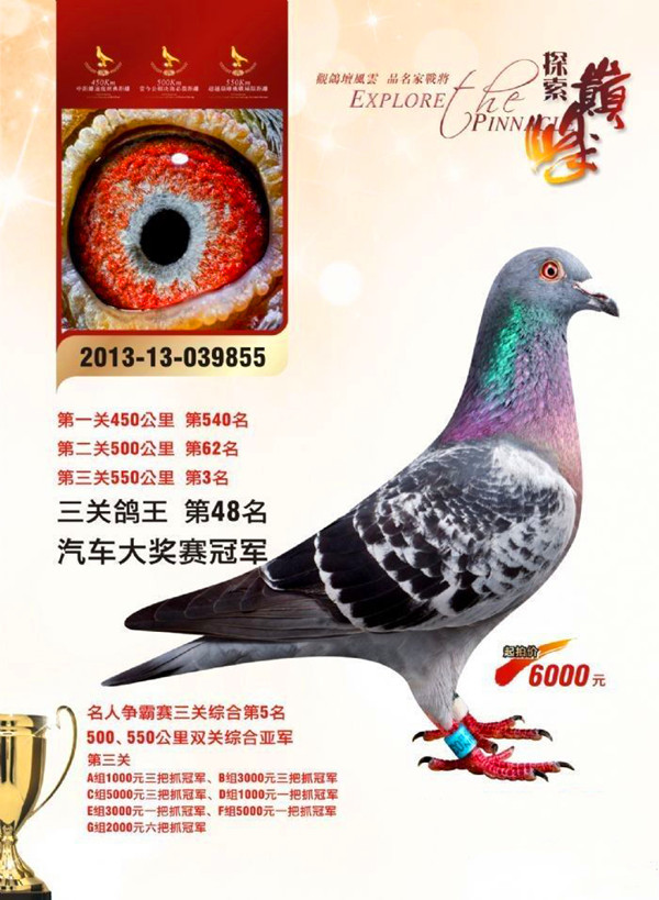 2015年在开创者铁鹰三关大奖赛中高位入奖一羽(足环号:15-04713),位列挑战赛第15名(仅送3羽)!