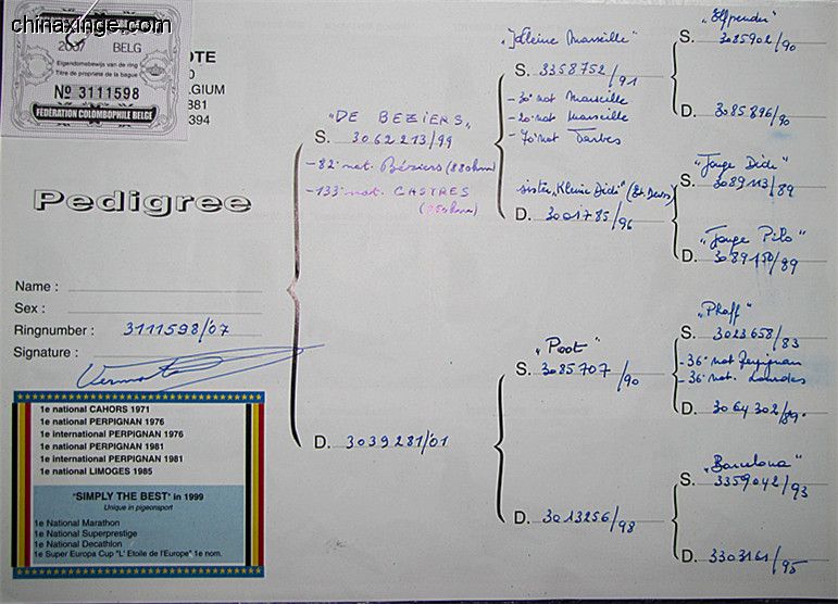 仔细研究勃默德先生的种鸽构成和血统就会发现为什么勃默德先生才能在竞争激烈的欧洲鸽界屹立至今!!