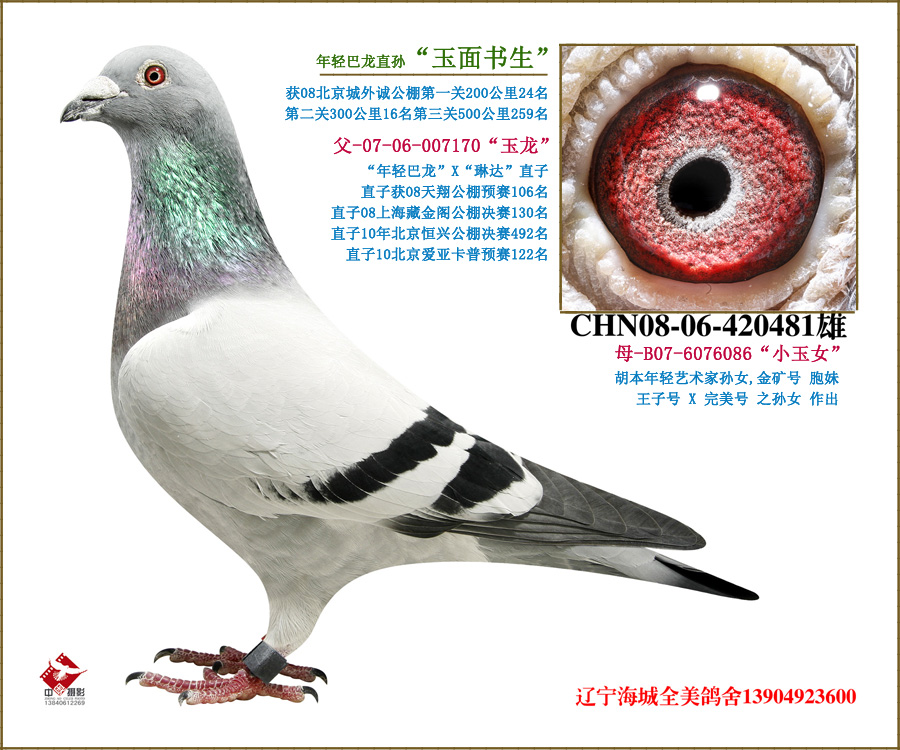 母-B07-6076086 年轻艺术家孙女“小玉女”“王子号”×完美号孙女作出,作出直子获08年北京城外诚公棚第一关180公里24名,第二关300公里16名,500公里决赛259名,直子获08年上海藏金阁名人赛鸽公棚,500公里决赛130名