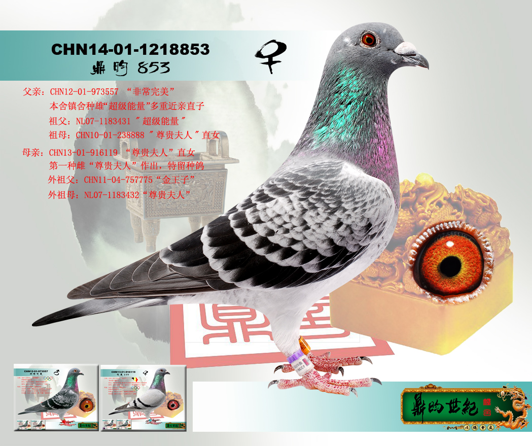 父亲为07年荷兰奥林匹克全距离鸽王冠军“超级53”、母亲为本舍第一种雄"无敌芬尼卡"全姐。