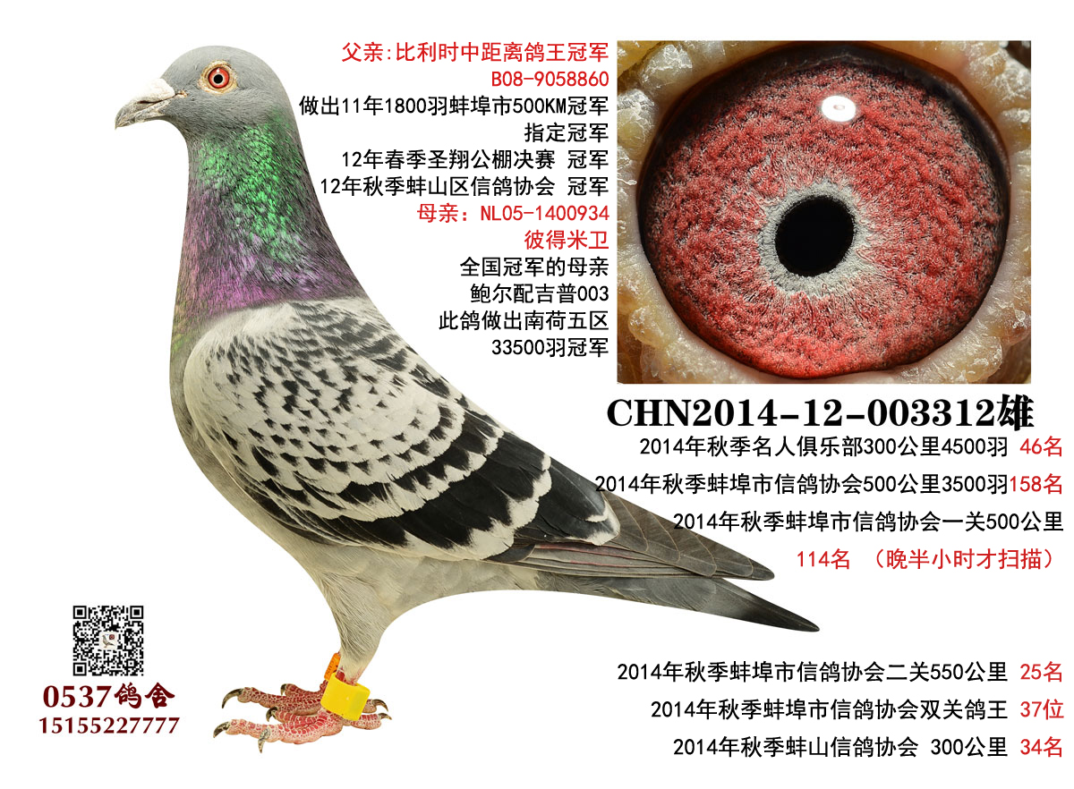 母亲:彼得米卫--全国冠军的母亲NL05-1400934 鲍尔配吉普003 此鸽做出南荷五区33500羽冠军