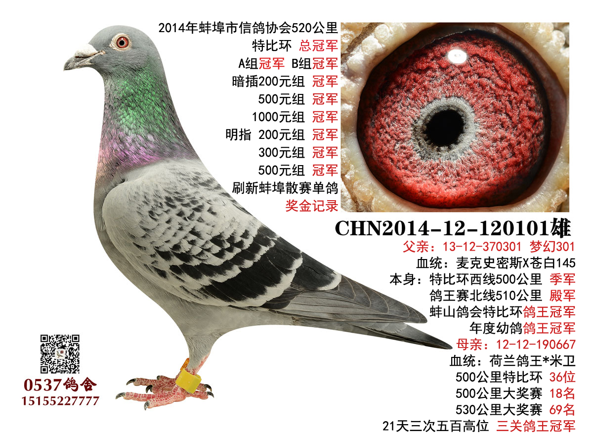 为0537鸽舍获得2014年蚌埠市信鸽协会500公里特比环 总冠军!!A B 两个组别冠军