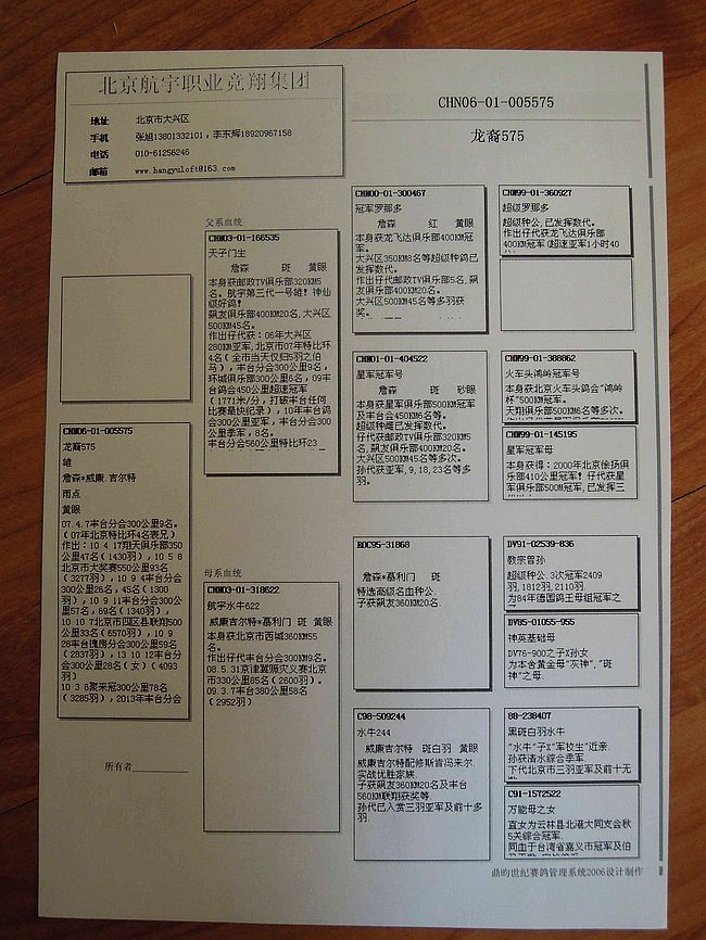 天子门生所有子代里面,最为战功赫赫,最为发挥广远,做出十余羽获奖鸽的就是一代大将-----龙裔575.本鸽买家将会获赠其原配对C07-410474!