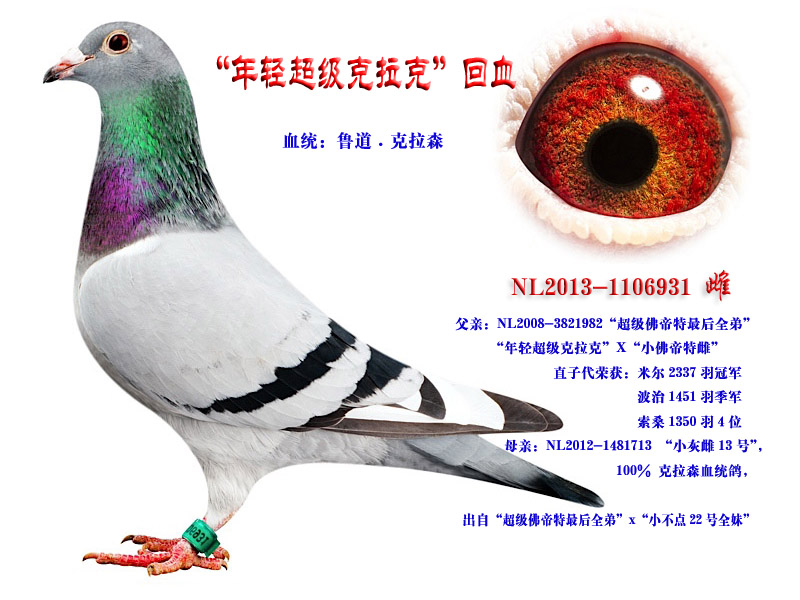 ▲.祖母“小佛帝特雌”是顶级雌鸽,荣获: