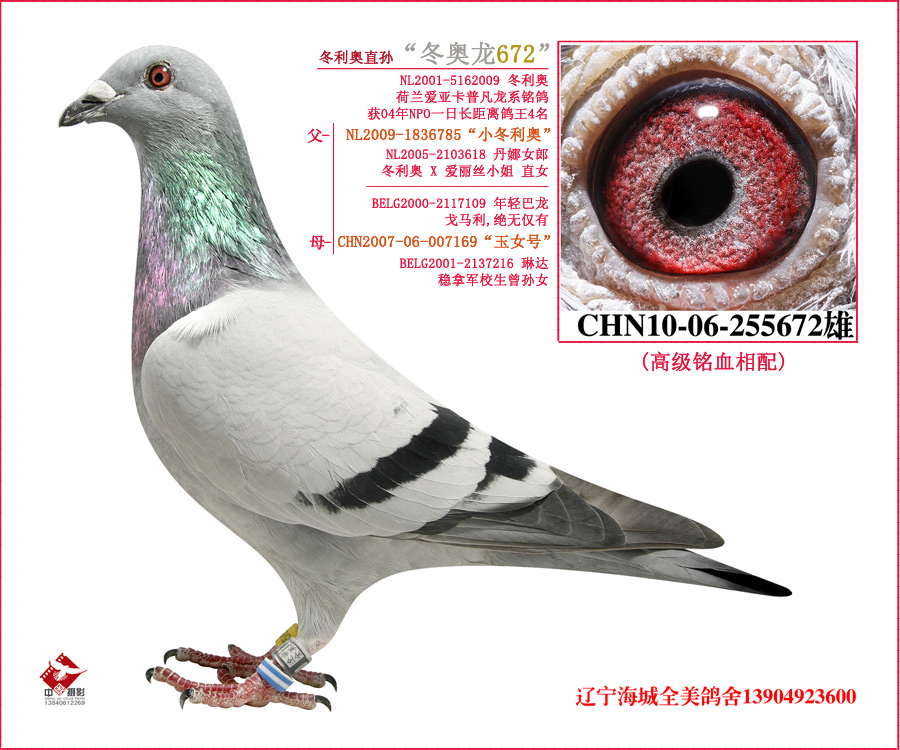 父环号 NL2009-1836785“小冬利奥”爱亚卡普凡龙 爱亚卡普铭鸽“冬利奥”X女儿“丹娜女郎”近亲作出