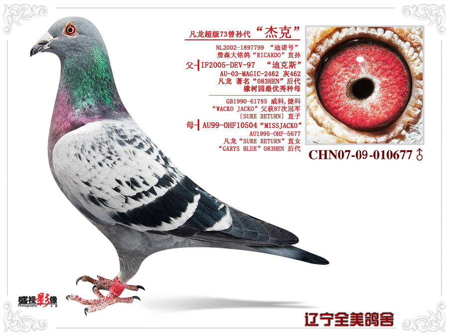 | 名称:凡龙超级73曾孙“杰克” | 环号:CHN2007-09-010677 |