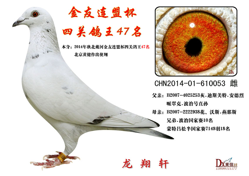 2014年.秋季.特比环.荣获四关综合鸽王.47名.北京.黄健作出使翔.