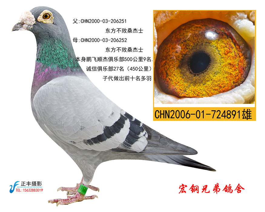 父CHN2000-03-206251 东方不败桑杰士 母CHN2000-03-206252东方不败桑杰士 本身鹏飞顺杰俱乐部500公里9名.诚信俱乐部27名(450公里)子代做出前十名多羽