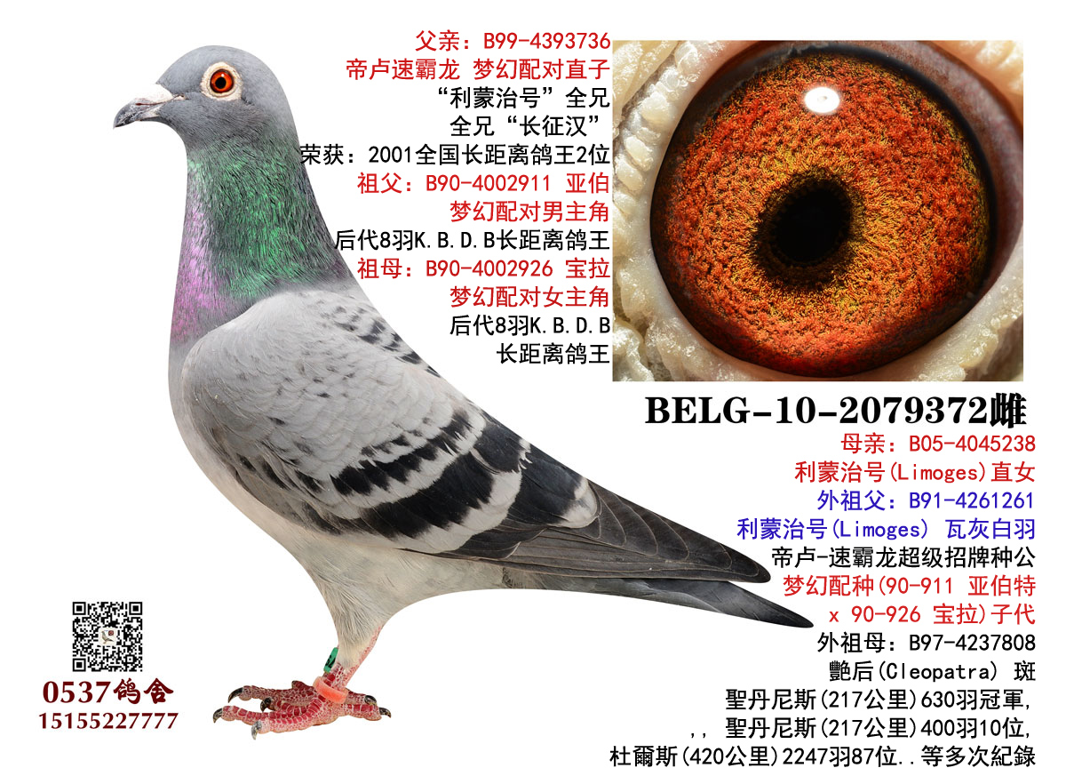 外祖父:B91-4261261 利蒙治号(Limoges) 瓦灰白羽 帝卢-速霸龙超级招牌种公