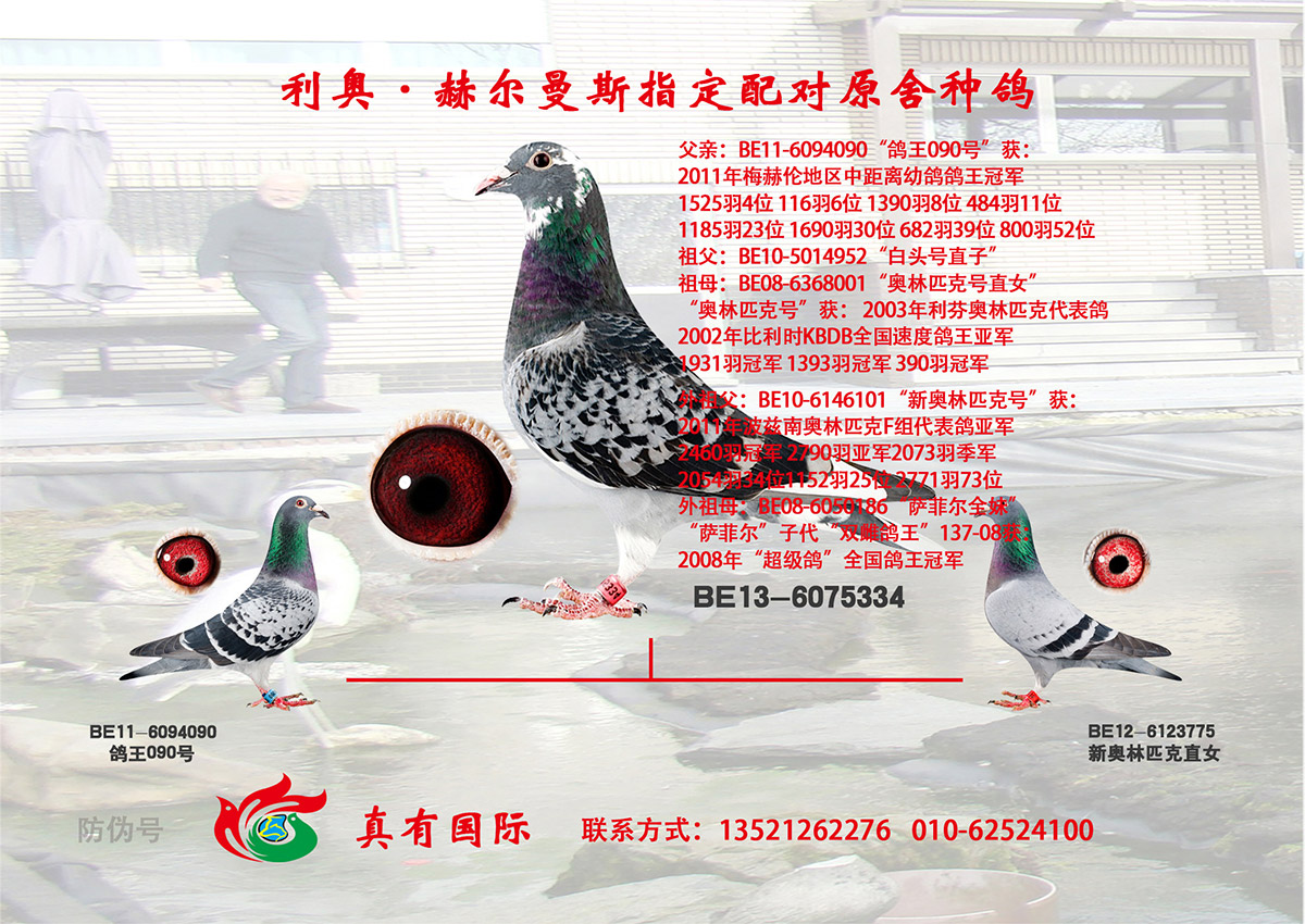 | 名称:利奥“鸽王090号x新奥林匹克号直女” | 环号:BE13-6075334 |