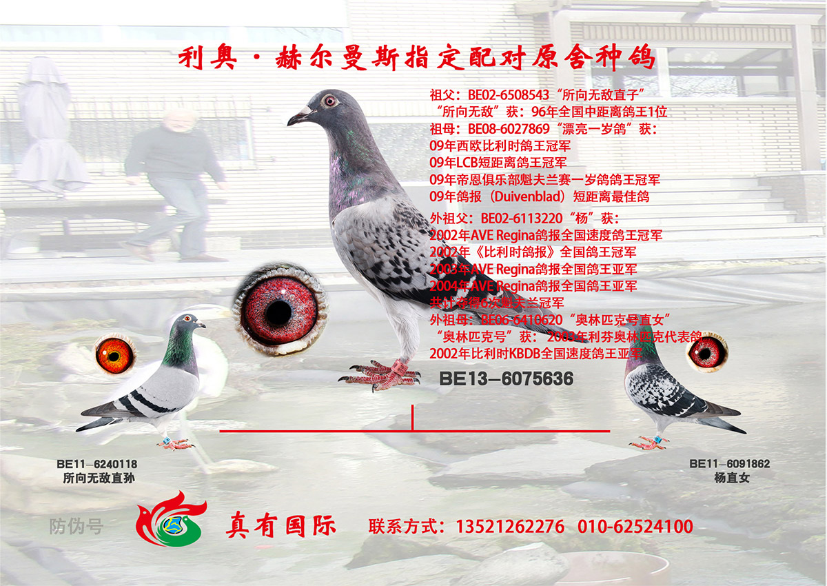 | 名称:利奥“所向无敌直孙”x“杨直女” | 环号:BE13-6075636 |