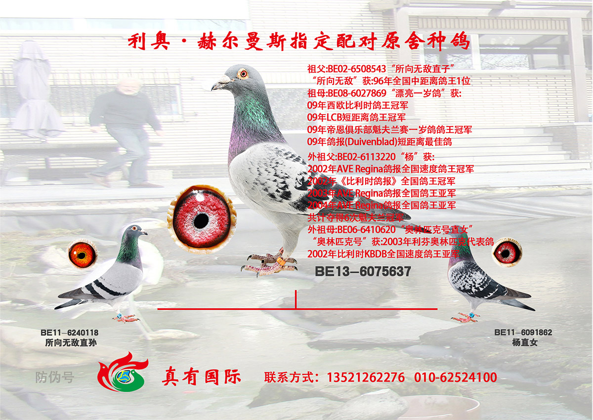 | 名称:利奥“所向无敌直孙”x“杨直女” | 环号:BE13-6075637 |