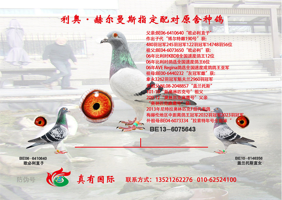 | 名称:利奥“欧必利直子”x“麻鹰半姐妹” | 环号:BE13-6075643 |