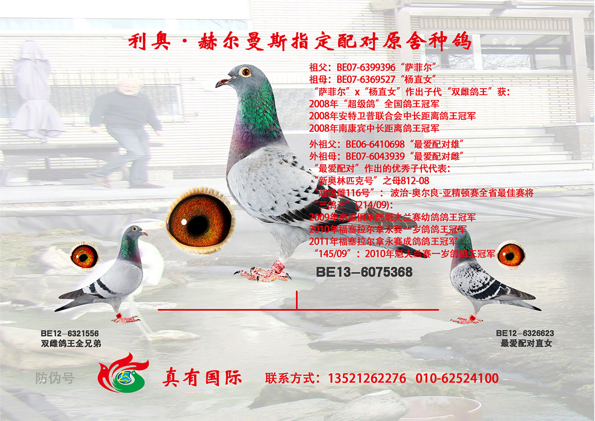 | 名称:利奥“双雌鸽王全兄弟”x“最爱配对直女” | 环号:BE13-6075368 |