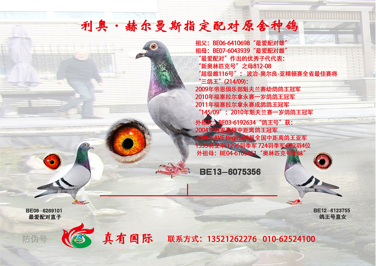 | 名称:利奥“最爱配对直子”x“鸽王号直女” | 环号:BE13-6075356 |