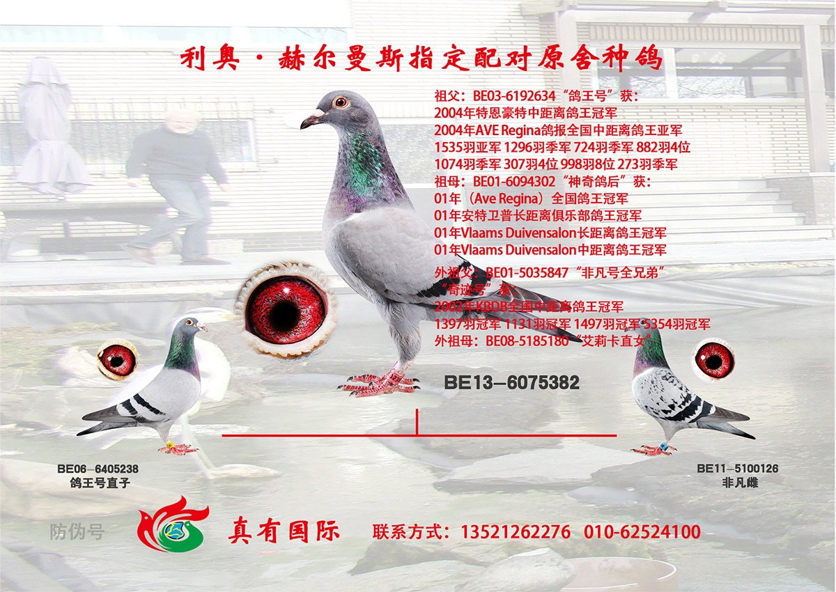 | 名称:利奥“神奇鸽后直子”x“非凡雌” | 环号:BE13-6075382 |