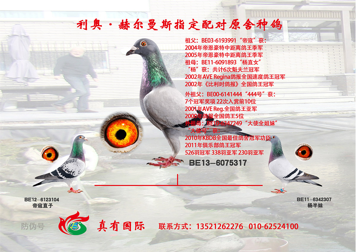 | 名称:利奥“帝寇直子”x“杨半妹” | 环号:BE13-6075317 |