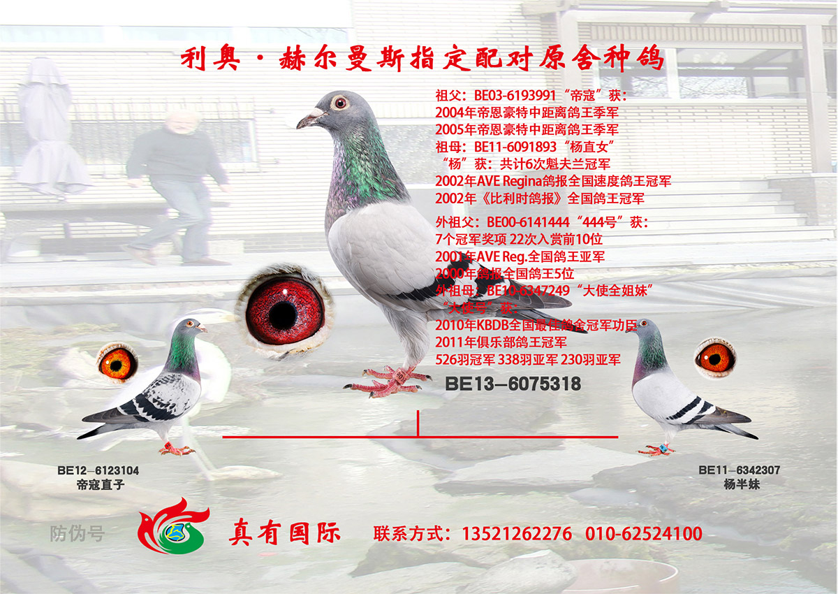 | 名称:利奥“帝寇直子”x“杨半妹” | 环号:BE13-6075318 |
