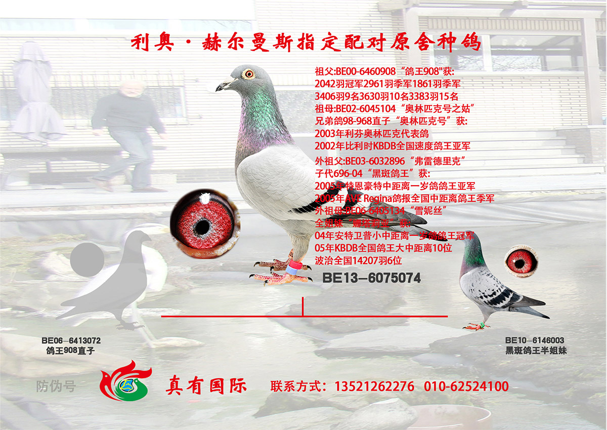 外祖父:BE03/6032896“弗雷德里克”子代:696-04“黑斑鸽王”获: