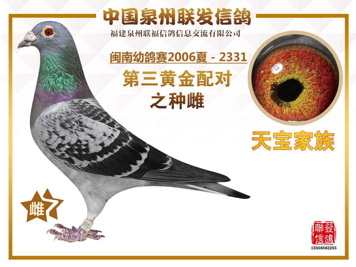 | 名称:闽南幼鸽赛2006夏-2331 | 环号:闽南幼鸽赛2006夏-2331 |