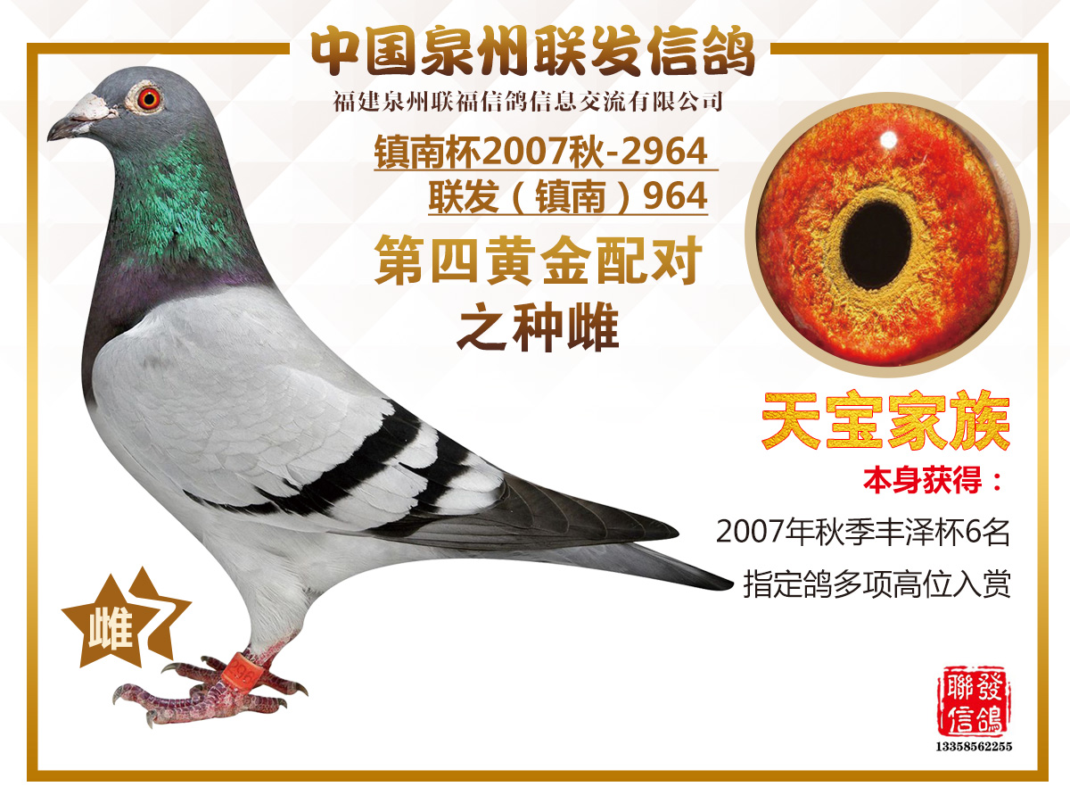 | 名称:联发(镇南)964 | 环号:镇南杯2007秋-2964 |