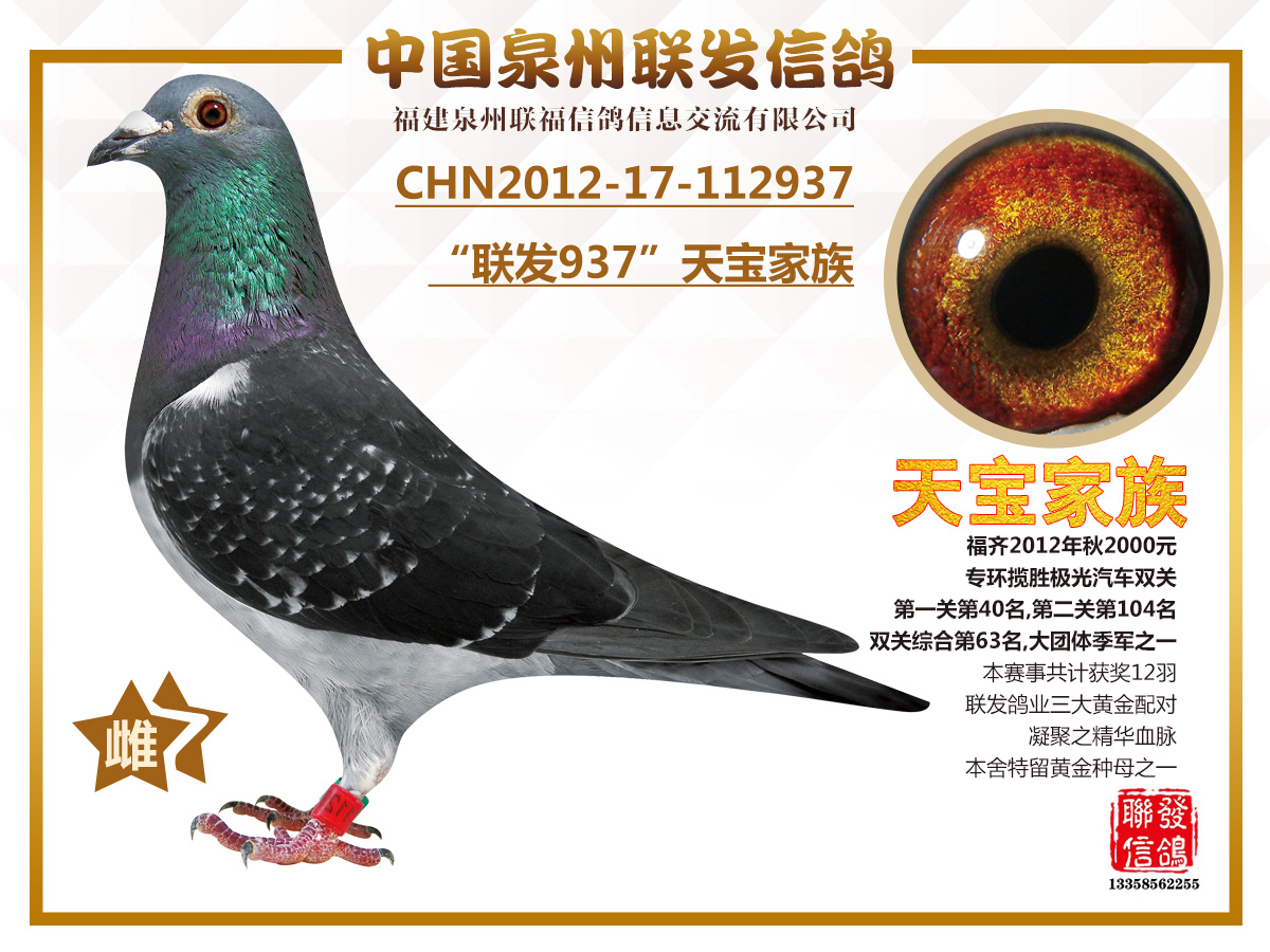 | 名称:“联发937”天宝家族 | 环号:CHN2012-17-112937 |
