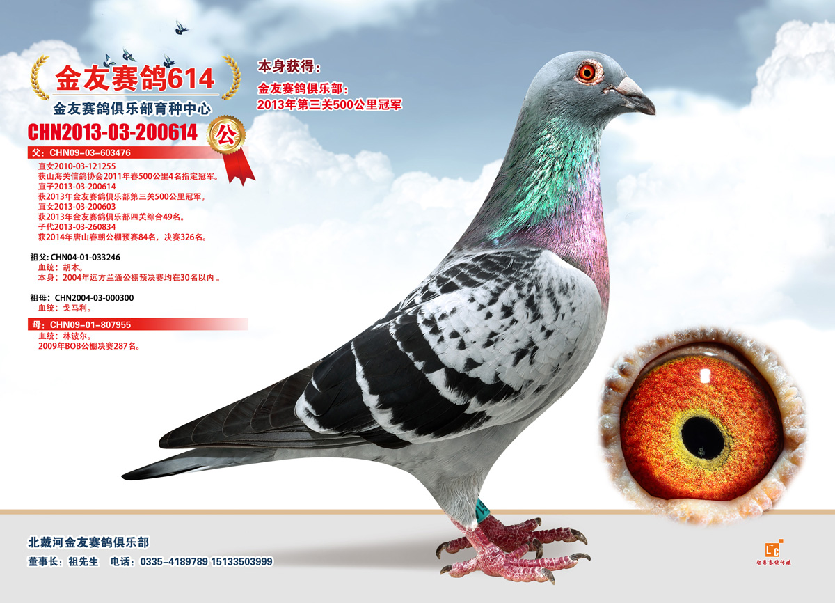 赛绩:金友赛鸽俱乐部2013年 第三关500公里冠军