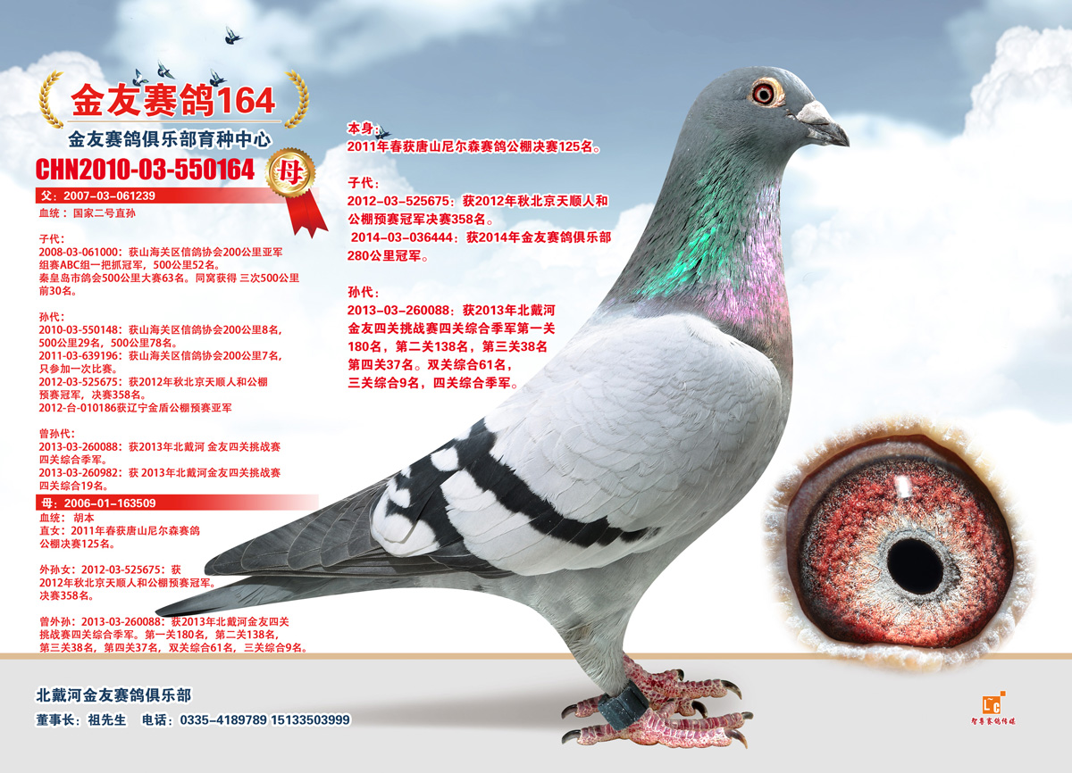 赛绩:2011年春获唐山尼尔森赛鸽公棚决赛125名