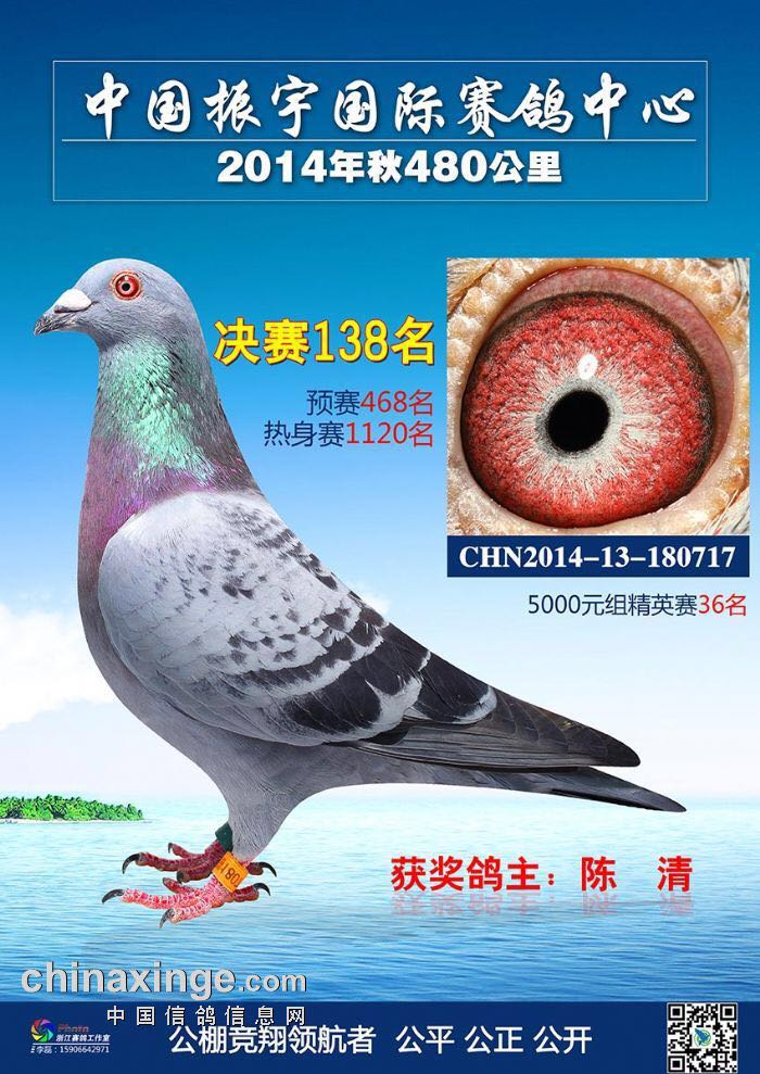 赛绩:中国振宇国际赛鸽中心2014年秋480公里决赛138名