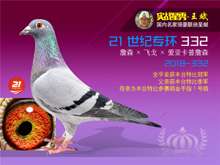 | 赛绩:全平辈获得丰台五百元特比环冠军,赢奖金65万 父亲获得丰台三千元特比季军 母亲获得丰台三千元特比金手指1号鸽 | |