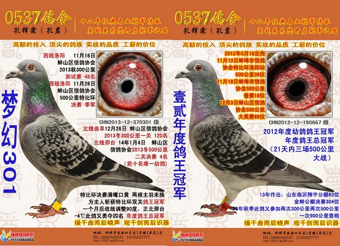 此鸽2015年将和2013年特比环冠军13-12-180951组成配对 子代2万一羽