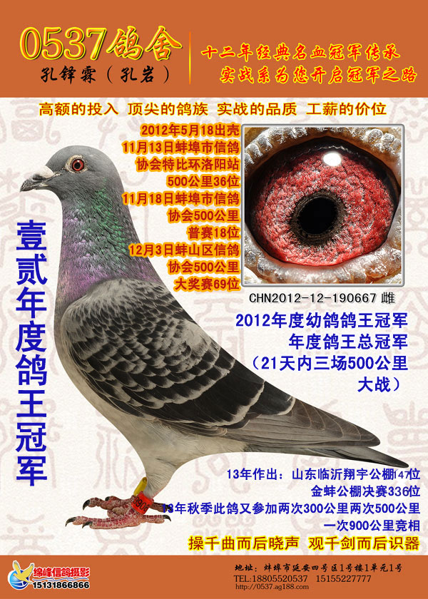 2012年幼鸽鸽王冠军 年度鸽王总冠军