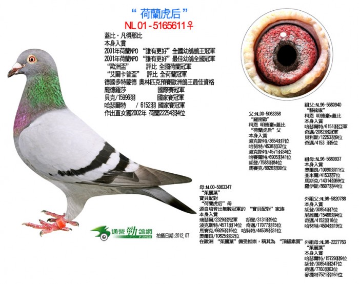 01年荷兰NPO“谁有更好的”全国幼鸽鸽王冠军