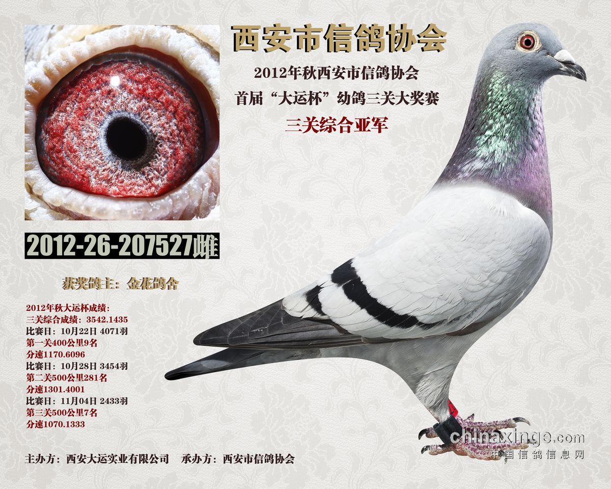 赛绩:12年秋季西安市首届“大运杯”幼鸽三关大奖赛