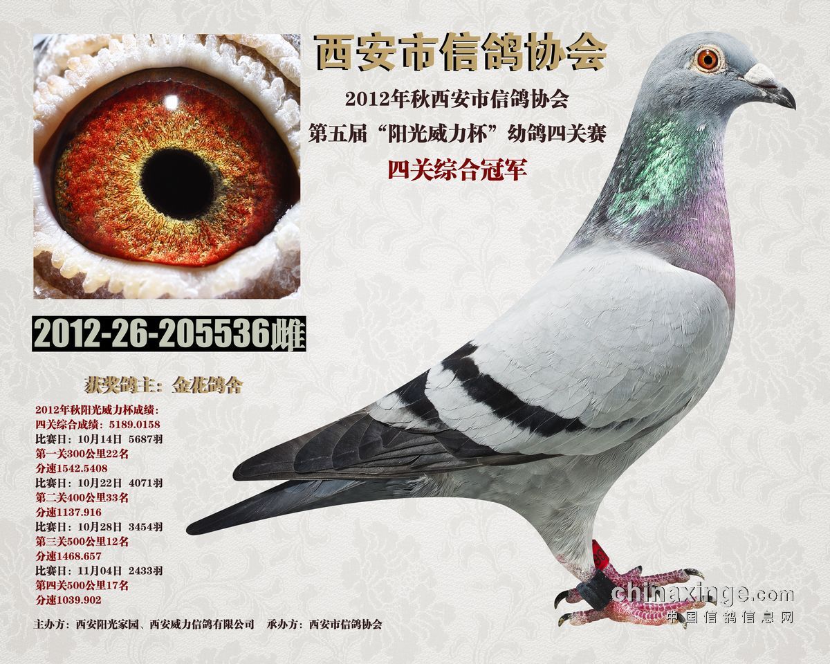 赛绩:12年秋西安市第五届“阳光威力杯”幼鸽四关赛