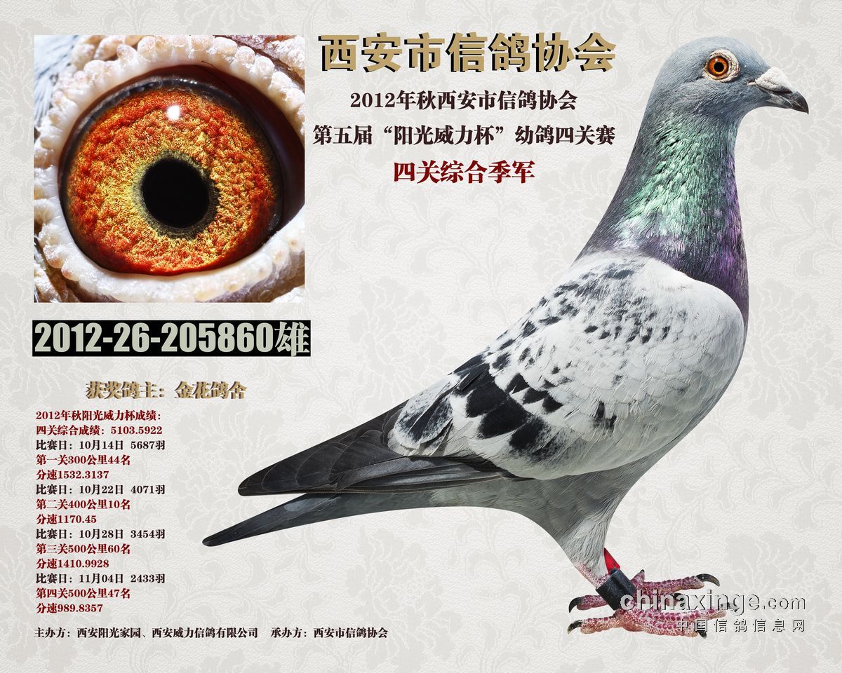 赛绩:12年秋西安市第五届“阳光威力杯”幼鸽四关赛