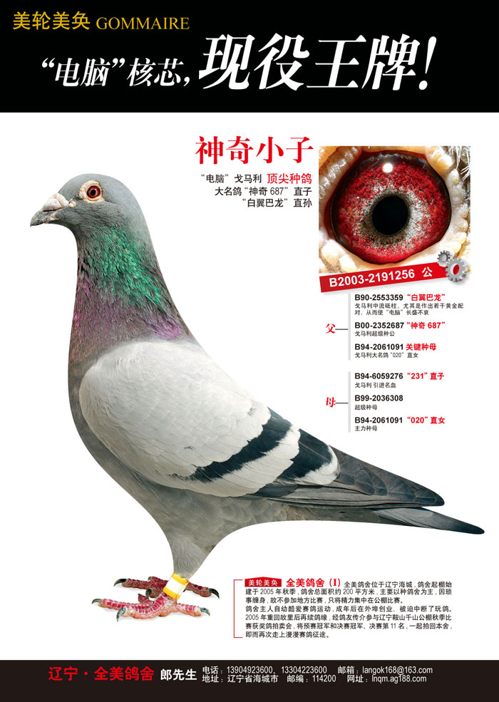 “神奇小子”(白羽巴龙之孙),“年轻巴龙”之弟鸽“神奇687”ד功勋母308”06年波治“吉尔”之母作出