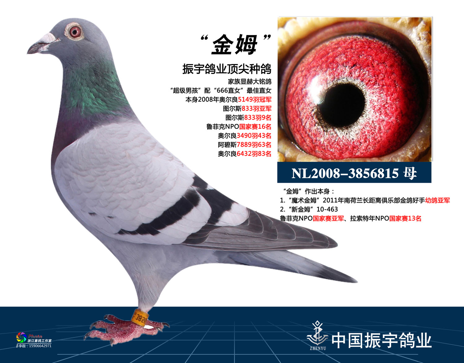 阿碧斯7889羽冠军,奥尔良4927羽冠军,西尼西奈8785羽冠军,全国长距离鸽王4位