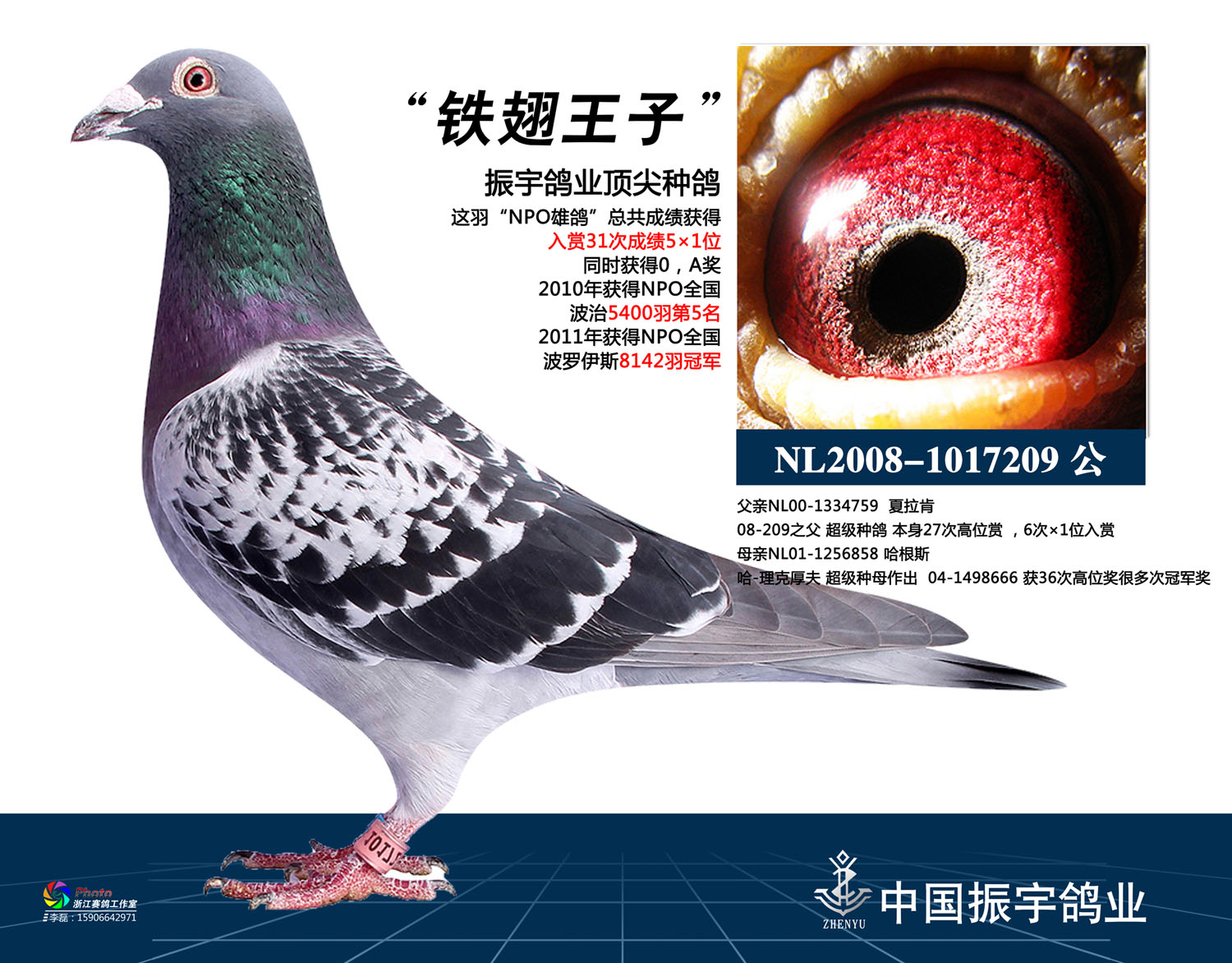 是羽超级的当日归种鸽,作出两羽超级孩子00-1334759和00-1334931这两羽雄鸽:4年总共获得61次高位,13次冠军.它的父亲93-219“好种鸽”本身获得鸽王冠军