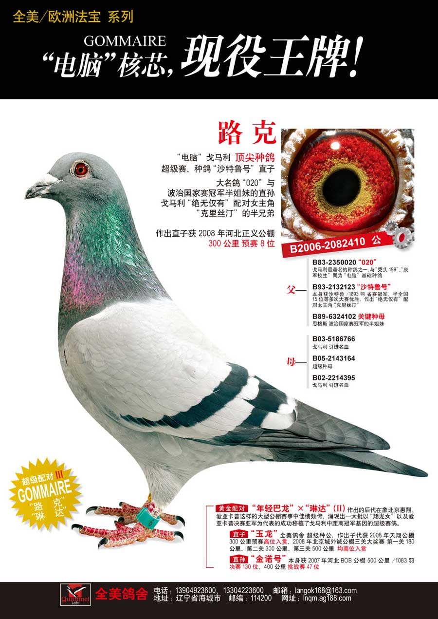 父-查特卢1893羽1位,查特卢13465羽半全国1位,索西松406羽3位,克来蒙7926羽45位,蒙他吉斯1315羽33位