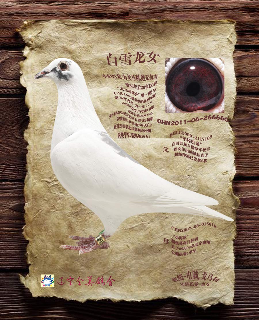直子09/001获河北影视公棚决赛167名,直子09/002获北京惠翔公棚决赛季军,,09丹东祺阳赛鸽公棚预赛181名,直女2010年春河北保定爱亚卡普决赛131名,直子2010北京惠翔公棚预赛49名,决赛179名,直女2011年鞍山勝翔公棚预赛99名决赛114名,直孙109名,152名,孙女获2011年鞍山勝翔公棚,决赛153名,109名