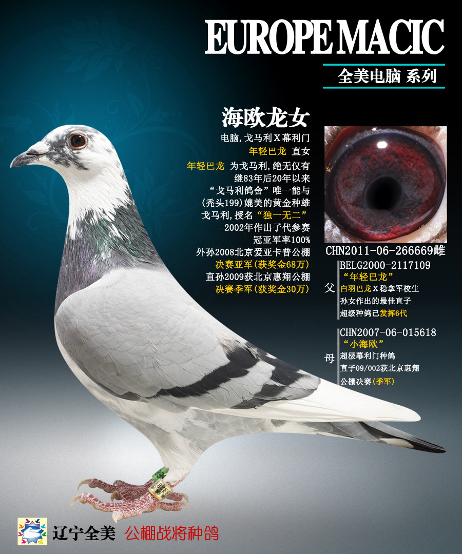 年轻巴龙,为戈马利,绝无仅继83年后20年以来“戈马利鸽舍”唯一能与(禿头199)媲美的黄金种雄,戈马利授名“独一无二”02年作出子代参赛冠亚军率100%