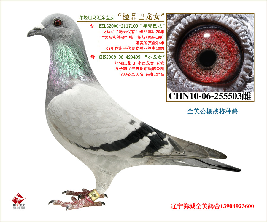 母环号 CHN2008-06-420499“小龙女”(年轻巴龙X小巴龙女直女) 直子获:09辽宁盘锦市捷威公棚200公里16名,决赛127名