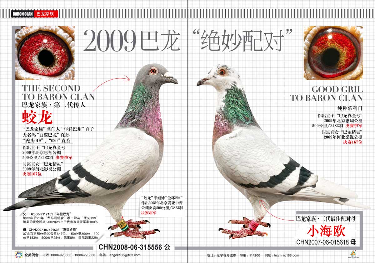 父-B00-2117109 “年轻巴龙”继83年后20年“戈马利鸽舍”唯一能与〔禿头199〕媲美的黄金种雄,02年作出子代参赛冠亚军率100%