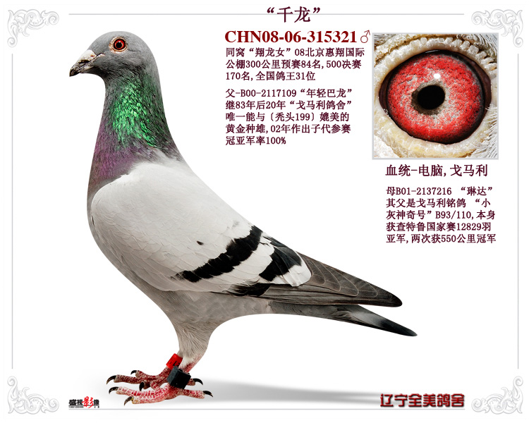 “千龙”血统-电脑,戈马利-同窝“翔龙女”08北京惠翔国际公棚300公里预赛84名,500决赛170名,全国鸽王31位