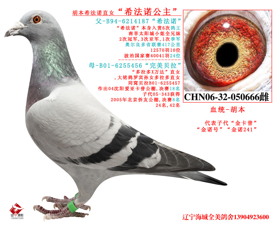 父-"西法诺"(B-94-6214178)是胡本起家血糸,老收音机直子,毋亲,年轻艺术家X电脑小禿头号,作出的第一直女,-"西法诺"获2次冠军,3次亚军1次季军,奥尔良多省联赛12570羽10名,波治国家赛40041羽24名,入赏了6次鸽王,全兄妹太阳城小姐96年南非太阳城百古美元大奖赛亚军