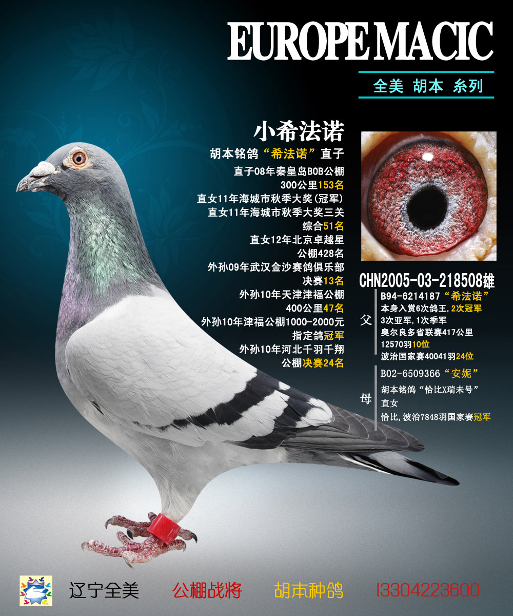 | 赛绩:作出冠军、鸽王、公棚前25名等 |