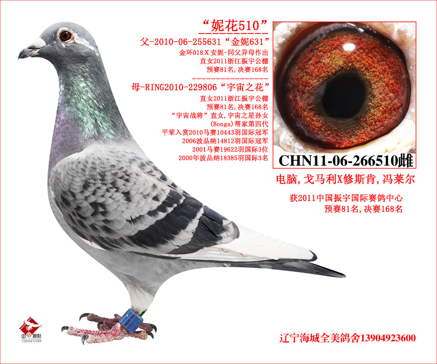 | 赛绩:中国振宇国际赛鸽中心预赛81,决赛168名 |