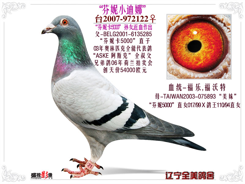 父-BELG2001-6135285“芬妮卡5000”直子 03年奥林匹克全能代表鸽“ASKE 阿斯克”全叔父,兄弟鸽06年荷兰拍卖会创天价54000欧元